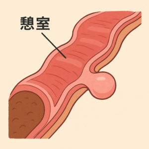 憩室とは、大腸や小腸の壁に便のたまりやすいポケットのようなものができる状態を いいます。